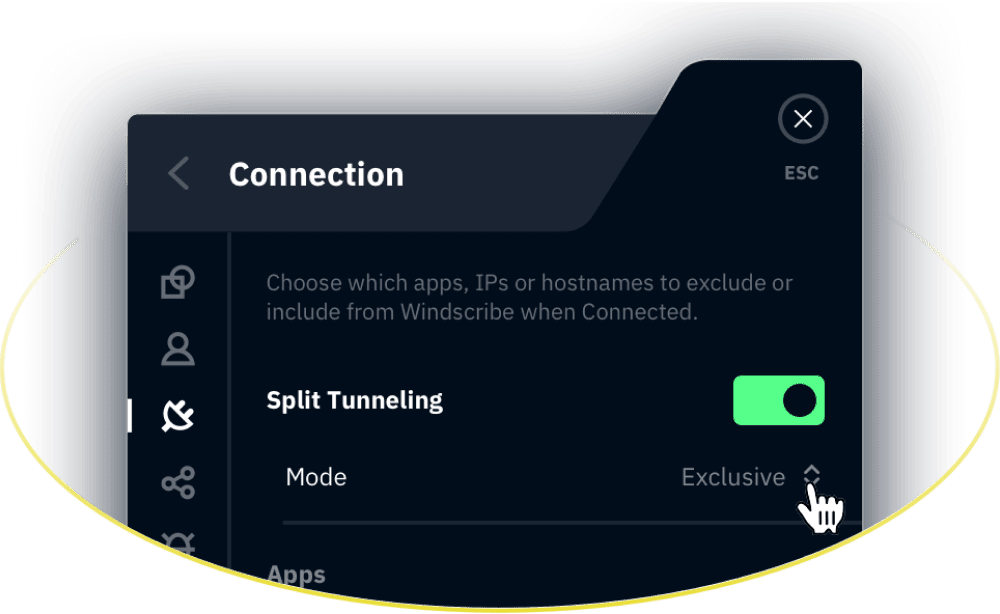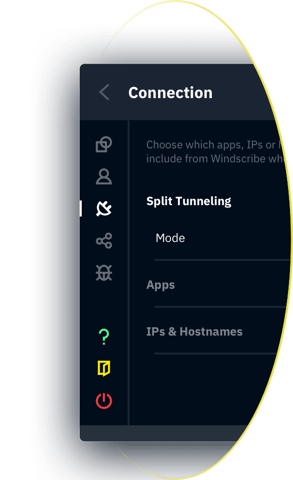 There are cases when you don't wish to tunnel all your traffic through a VPN. Windscribe offers 2 split tunneling types, and 2 modes for each one.