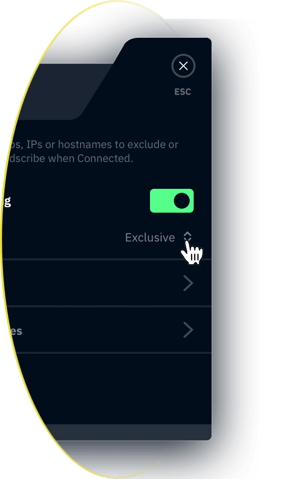 Allows you to select IP addresses, domains and whole IP networks to be tunneled over the VPN, or excluded from the tunnel.