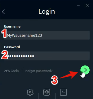- Enter your username and password and press the green arrow to login.